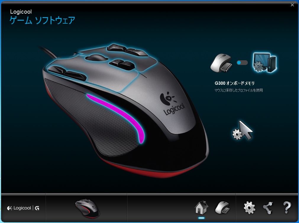 設定は専用のマウスウェアから行います。設定には大きく分けて、【オンボードメモリ(マウス内部のチップに設定が保存される)】と【自動ゲーム検出(PCに設定が保存される)】の2種類が有ります。 一度オンボードメモリに設定を行っておくとドライバをアンインストールしたり別のPCでドライバのインストールなしで9つのボタンを使う事が出来ます。僕はPC2台を切替機を通して使用しているのですが、片方のPCにはドライバをインストールせずに済みました。意外な所で嬉しい機能です。